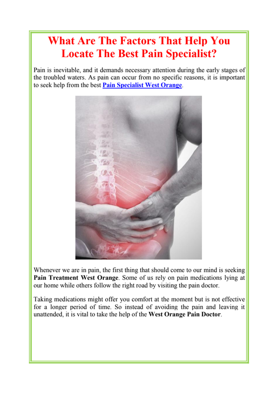 Physical therapy and exercise given by one's doctor of pain relief new jersey can help to fight knee pain by combusting the patient's leg muscles. The muscles of the leg can help lessen knee pain when they give more stand and stability for the joint. Seldom these workouts may need certain equipment for patients to perform them safely, such as splints.