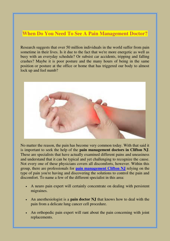 Learn to be calm while you're healing. It's a painful and difficult process, but it's deserving it. Ultimately, you'll be capable to go through your normal life pain-free, and you can't knock that. Visit paintreatmentspecialists.com today for more information.