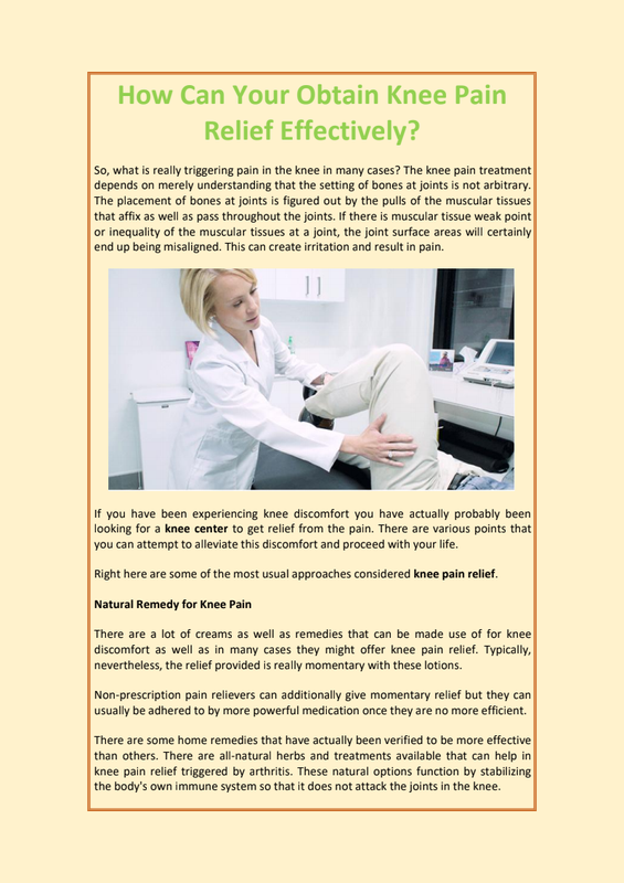 Article Source : http://paintreatment.inube.com/blog/8672799/how-can-your-obtain-knee-pain-relief-effectively/